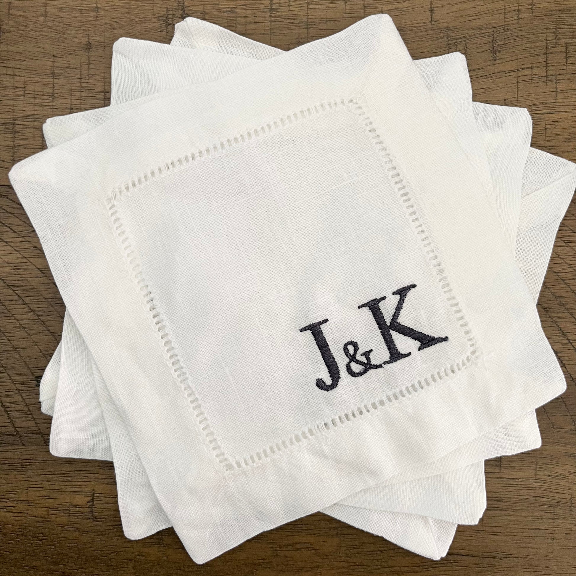 Celebrate love and togetherness with these 100% linen cocktail napkins, beautifully embroidered with a couple’s initials (e.g., J & K). Designed to be both timeless and personal, these napkins make the perfect keepsake for weddings, anniversaries, engagements, or simply elevating everyday hosting.