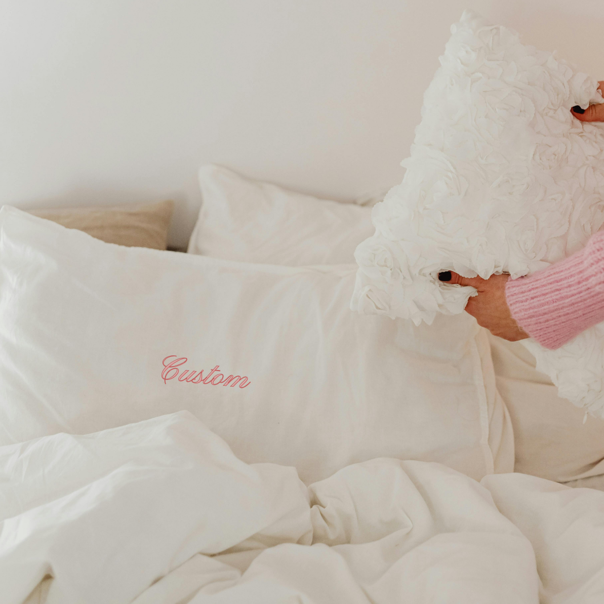 Simple, soft, and made to last. our Anything But Basic pillowcase proves that white doesn’t have to mean boring. Crafted from smooth microfiber, it’s lightweight, easy to care for, and oh-so-cozy. Add your personal touch with custom embroidery - whether it’s a name, initials, or a word that’s uniquely you. Perfect for everyday use, thoughtful gifting, or adding a little extra charm to your space.