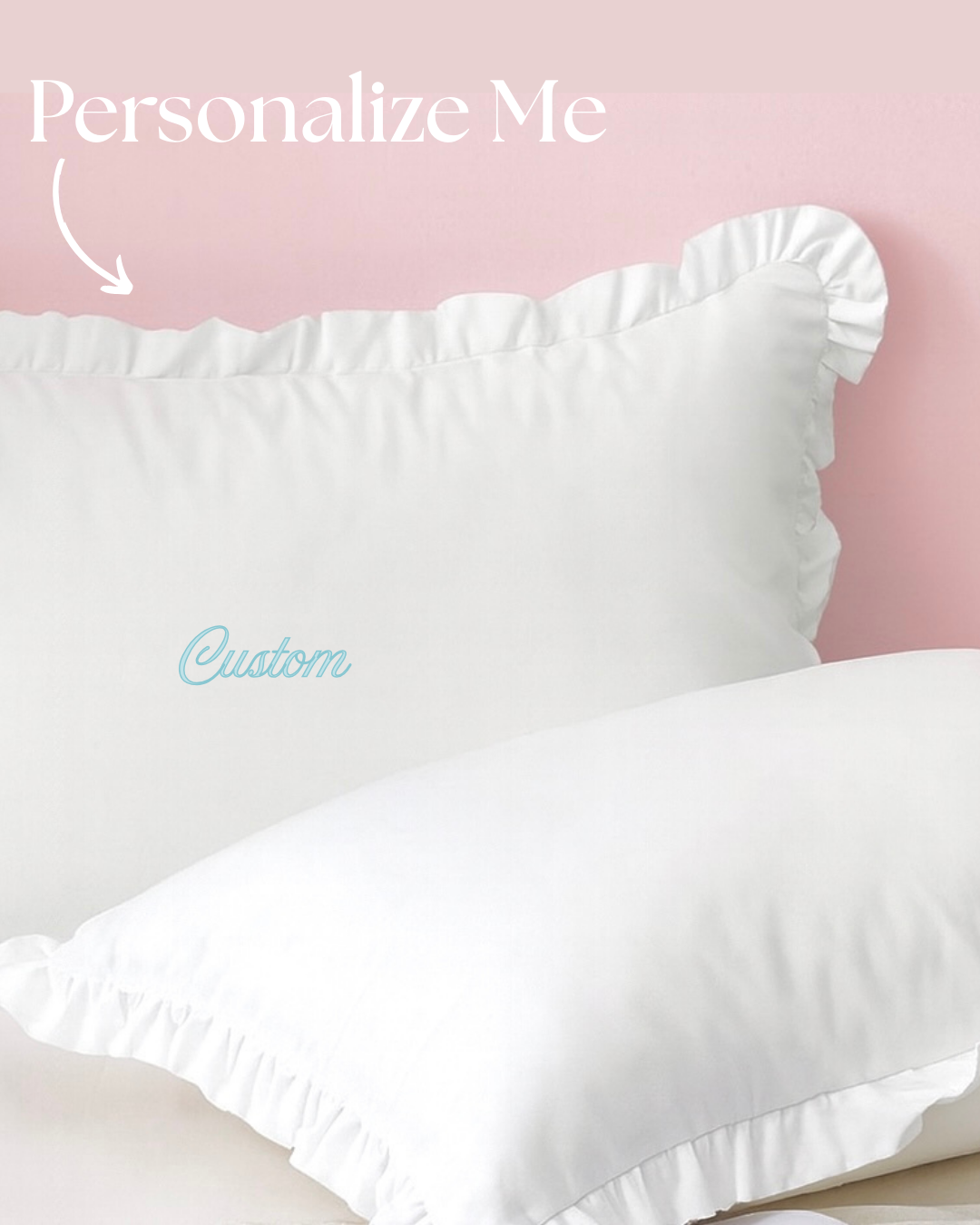 Give your bedding an upgrade with this personalized ruffle sham pillowcase. Soft, sweet, and finished with a charming ruffle edge, it’s embroidered with your choice of name, initials, or custom text.